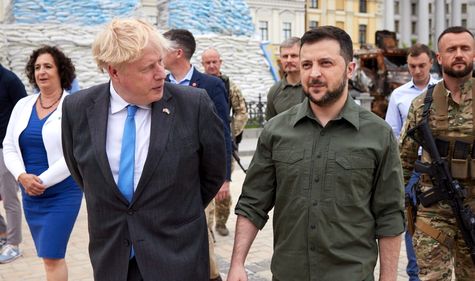 Aztán április 9-én, jött Boris Johnson. És a meglepetés: „Boris Johnson brit miniszterelnök, aki meglepetésszerű látogatást tett a háború sújtotta fővárosban, Kijevben találkozott Volodimir Zelenszkij ukrán elnökkel, miután az Egyesült Királyság ígéretet tett arra, hogy több mint 130 millió dollár értékben magas minőségű fegyverzetet biztosít Ukrajnának.”