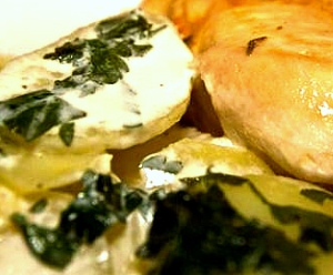 Hozzávalók: 1 nagy, kicsontozott főtt csirkemell, 40 dkg spenót, 4 főtt tojás, 60 dkg burgonya, olaj, petrezselyem, mustár, ecet, cukor, só.