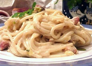 Hozzávalók: 3 ujjnyi kolozsvári szalonna, egy jó arasznyi póréhagyma, 2 gerezd fokhagyma, 2 darab tubusos krémsajt, 5 dkg sajt (lehet füstölt is), só, bors, majoránna, szerecsendió, tészta, petrezselyem.
